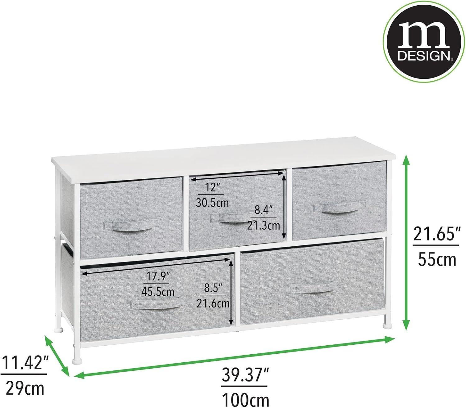 mDesign 21.65" High Steel Frame/Wood Top Storage Dresser Furniture Unit with 5 Removable Fabric Drawers - Wide Bureau Organizer for Bedroom, Living Room, Closet - Jane Collection, Cream/White(Gray)