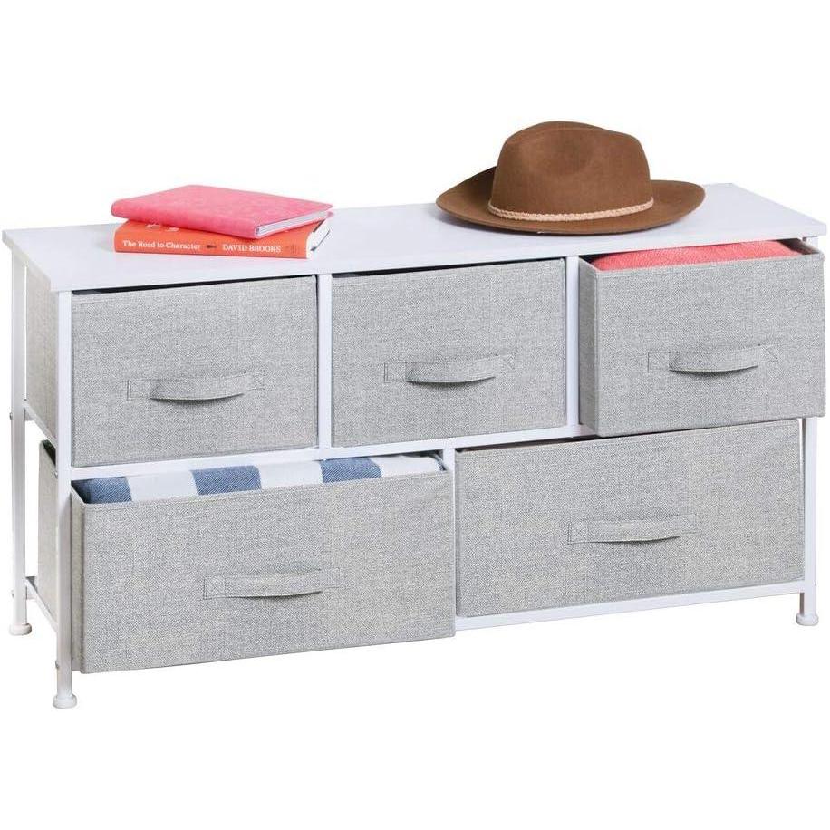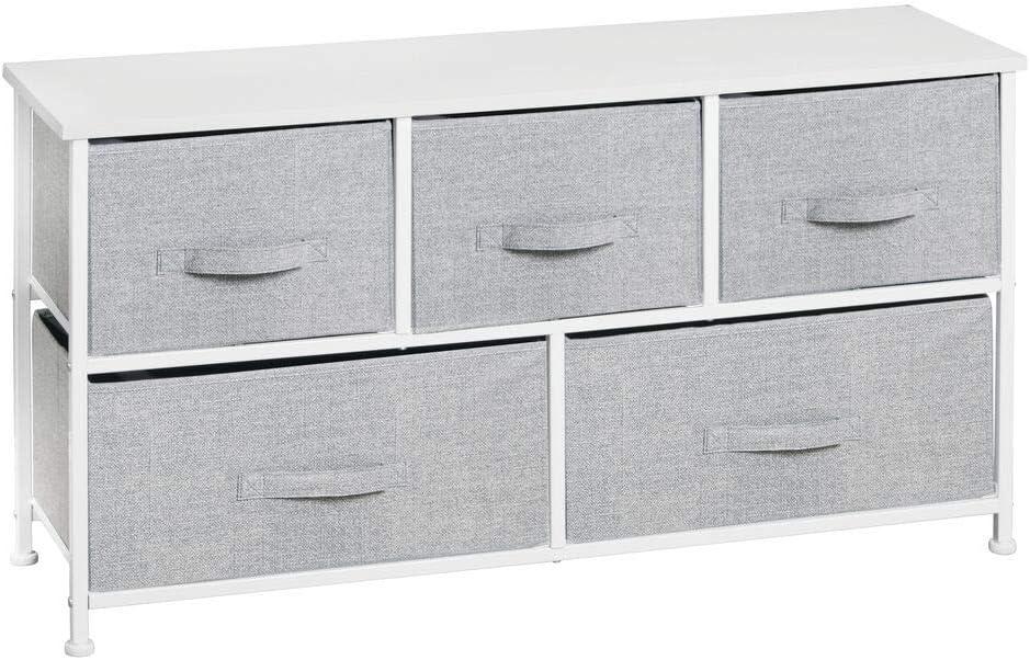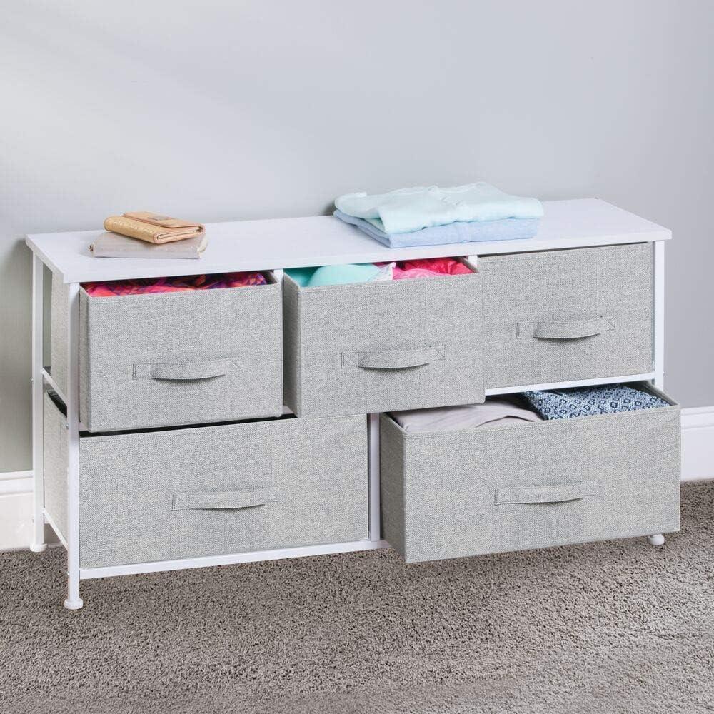 mDesign 21.65″ High Steel Frame/Wood Top Storage Dresser Furniture Unit with 5 Removable Fabric Drawers – Wide Bureau Organizer for Bedroom, Living Room, Closet – Jane Collection, Cream/White(Light Gray/White)