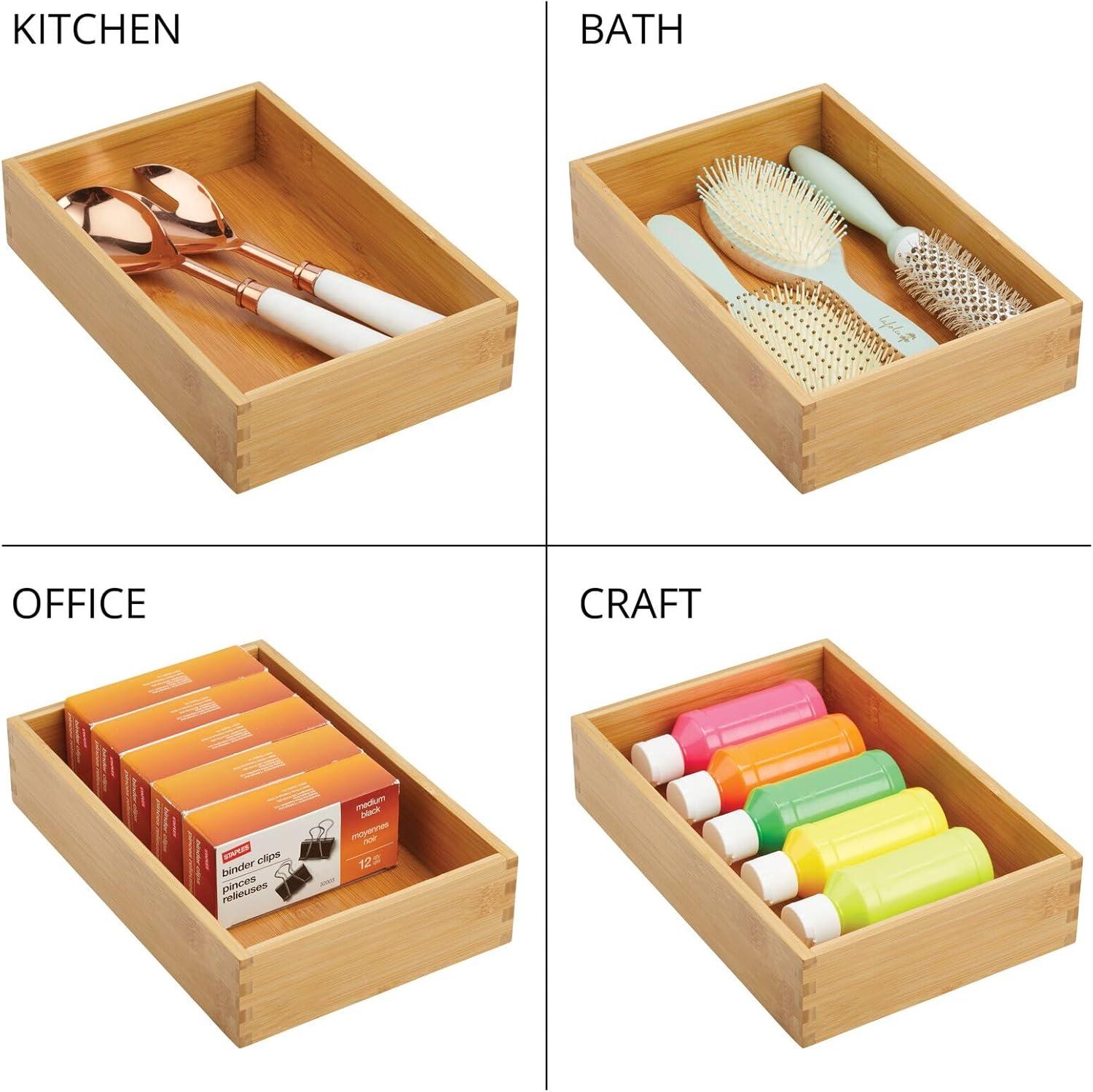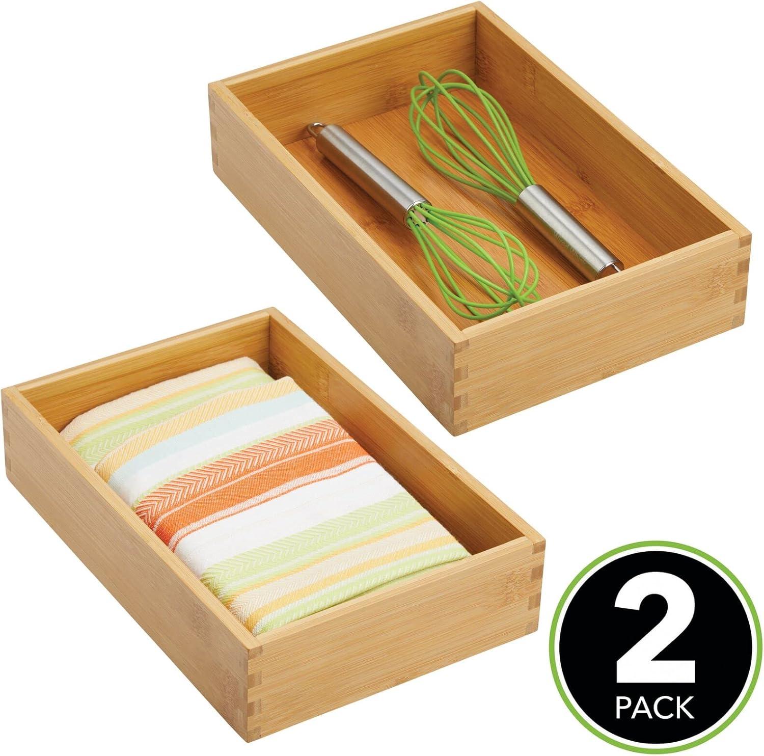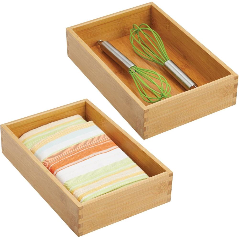 STORAGE MADE SIMPLE: Drawer organizers separate kitchen essentials and streamline drawers; Keep items organized and ready to use; Sort place setting pieces, measuring cups, spatulas, whisks, wine stoppers, bottle openers, bag clips, baking utensils and other kitchen gadgets; Get that junk drawer organized – perfect for containing pens, pencils, scissors and other kitchen clutter; Combine with other mDesign drawer organizers to create a custom fit for your drawers; Set of 2