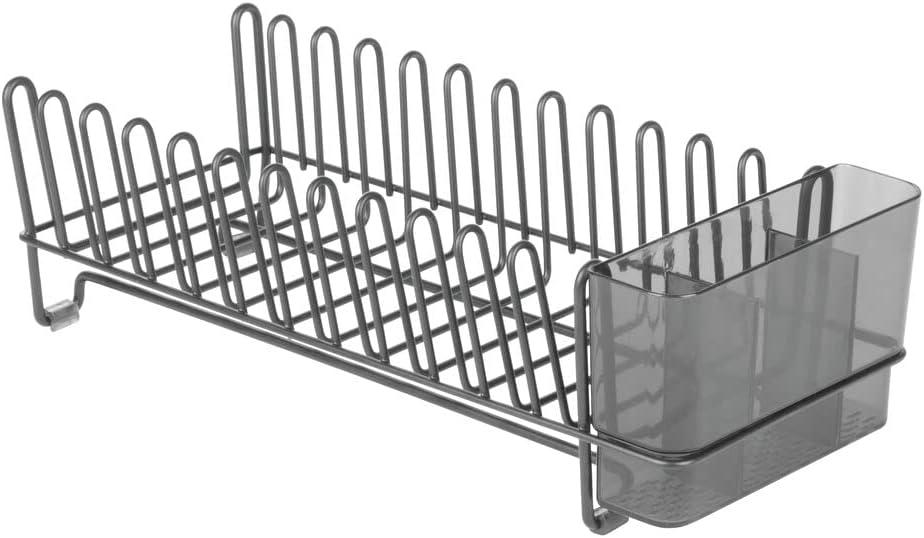 mDesign Dish Tray – Practical Draining Rack for Sink – Great Draining Rack – Up to 12 Plates and Cutlery – Bronze(Graphite/Smoke)