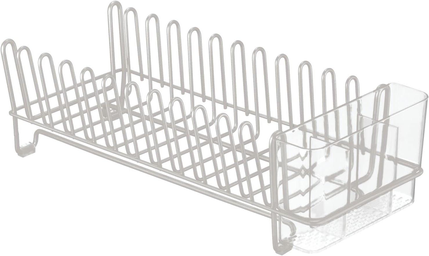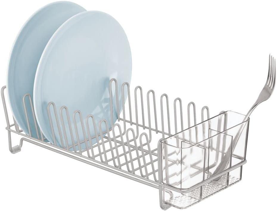mDesign Dish Tray – Practical Draining Rack for Sink – Great Draining Rack – Up to 12 Plates and Cutlery – Bronze(White/Clear)
