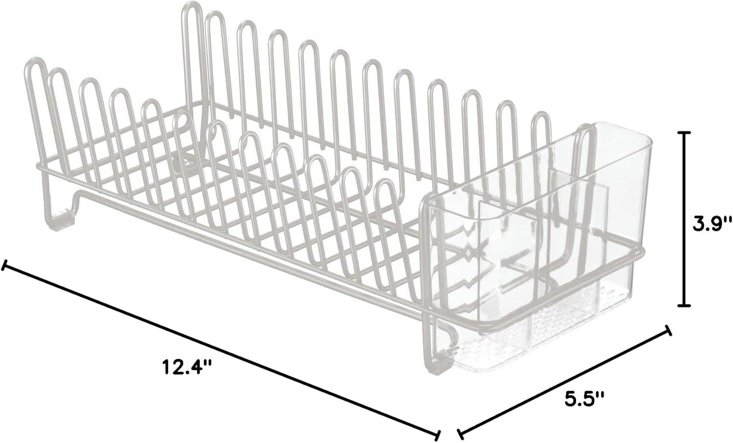 mDesign Dish Tray - Practical Draining Rack for Sink - Great Draining Rack - Up to 12 Plates and Cutlery - Bronze(Stone/Clear)