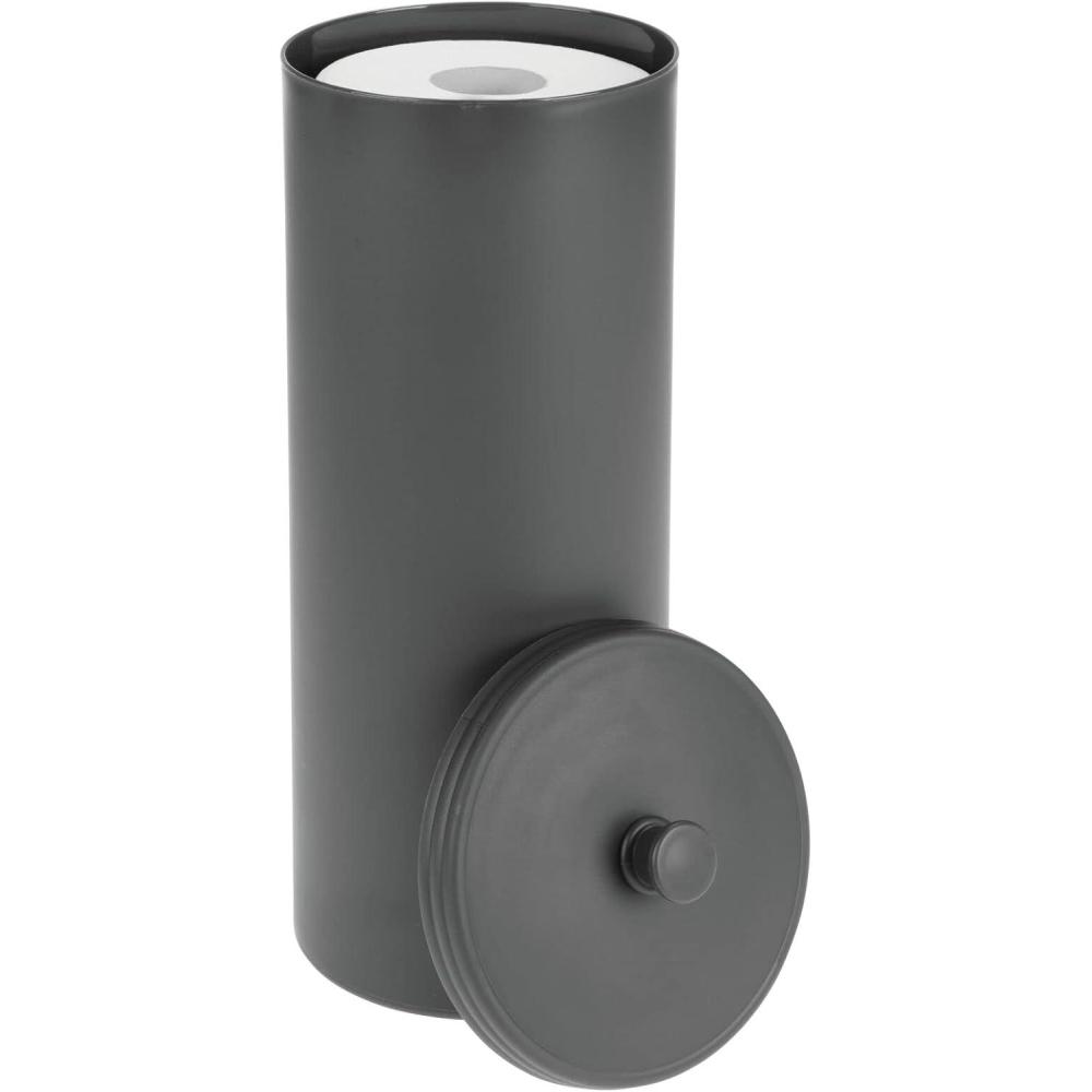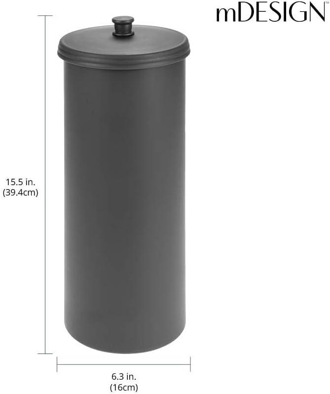 FUNCTIONAL & VERSATILE: The closed canister design with lid ensures that toilet paper stays off bathroom floors so rolls are always clean, dry, and ready to use; Even holds jumbo-sized rolls; Also makes a great storage organizer for other rooms in the house – Use in your mudroom or garage to hold umbrellas, baseball bats, and sports equipment