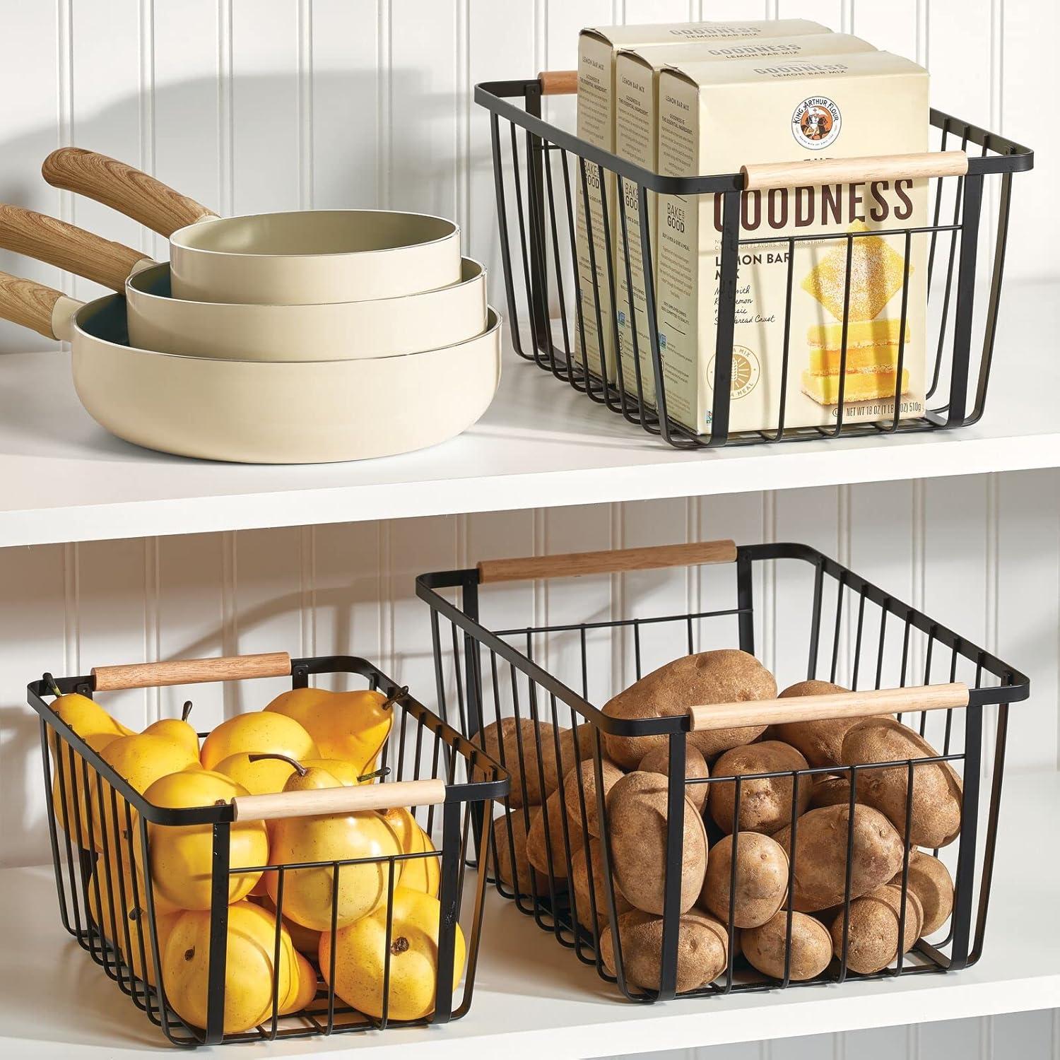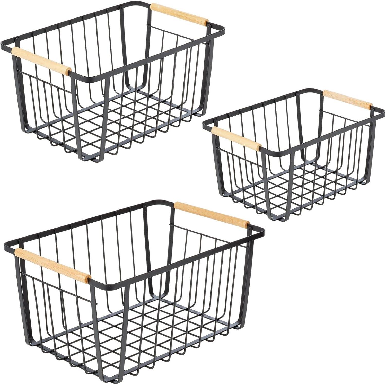 mDesign Metal Farmhouse Wire Organizer Storage Bin Basket with Handle – Rustic Container Organizers for Cabinet, Shelves, Counter, Bathroom, or Kitchen Pantry – Set of 3 – Matte Black