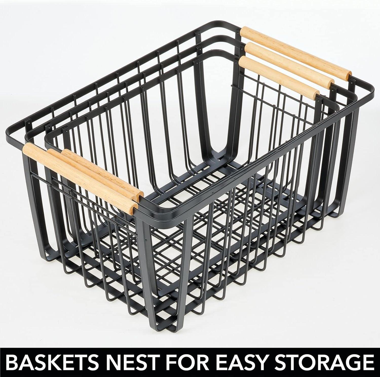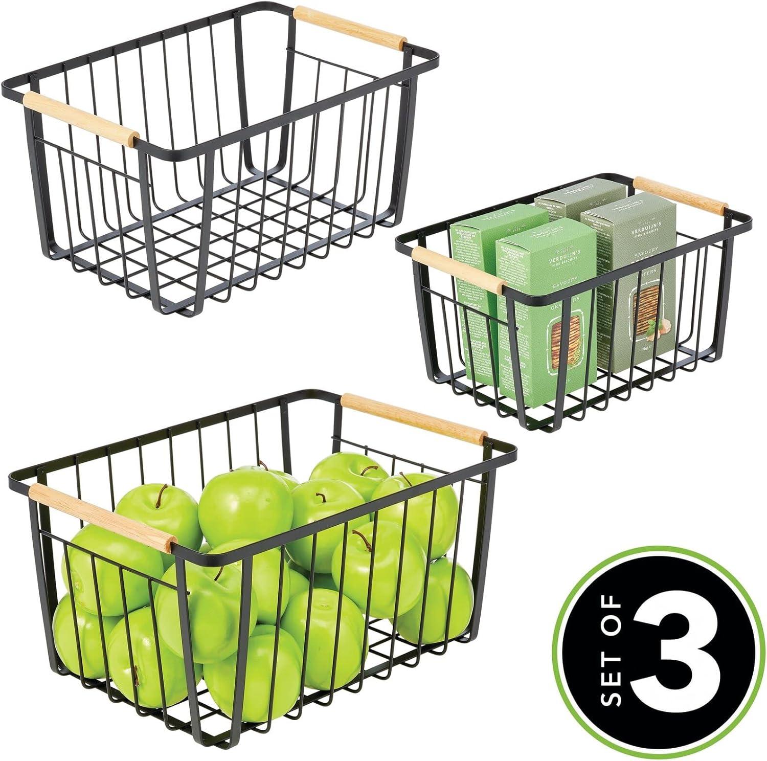 mDesign Metal Farmhouse Wire Organizer Storage Bin Basket with Handle - Rustic Container Organizers for Cabinet, Shelves, Counter, Bathroom, or Kitchen Pantry - Set of 3 - Matte Black