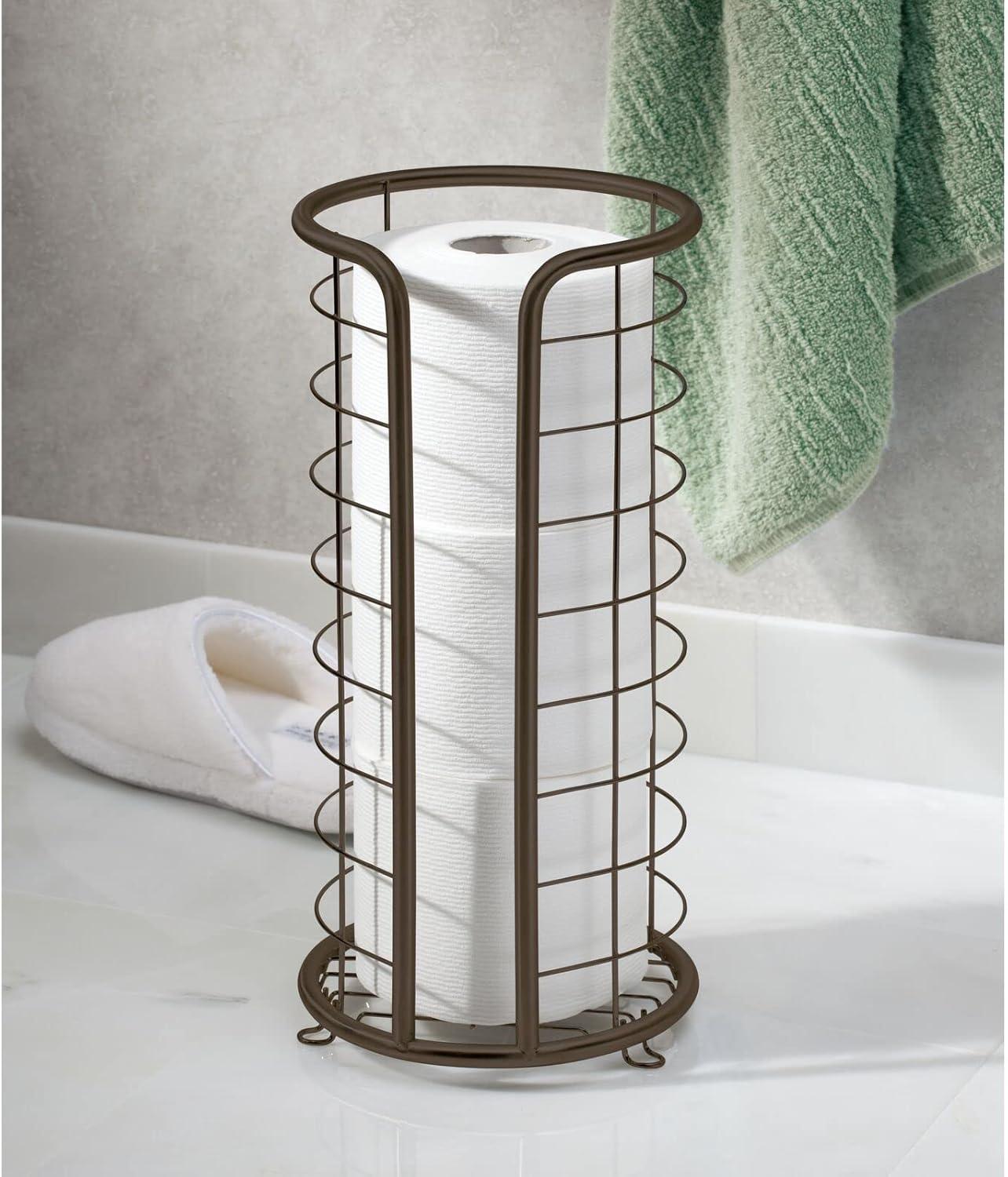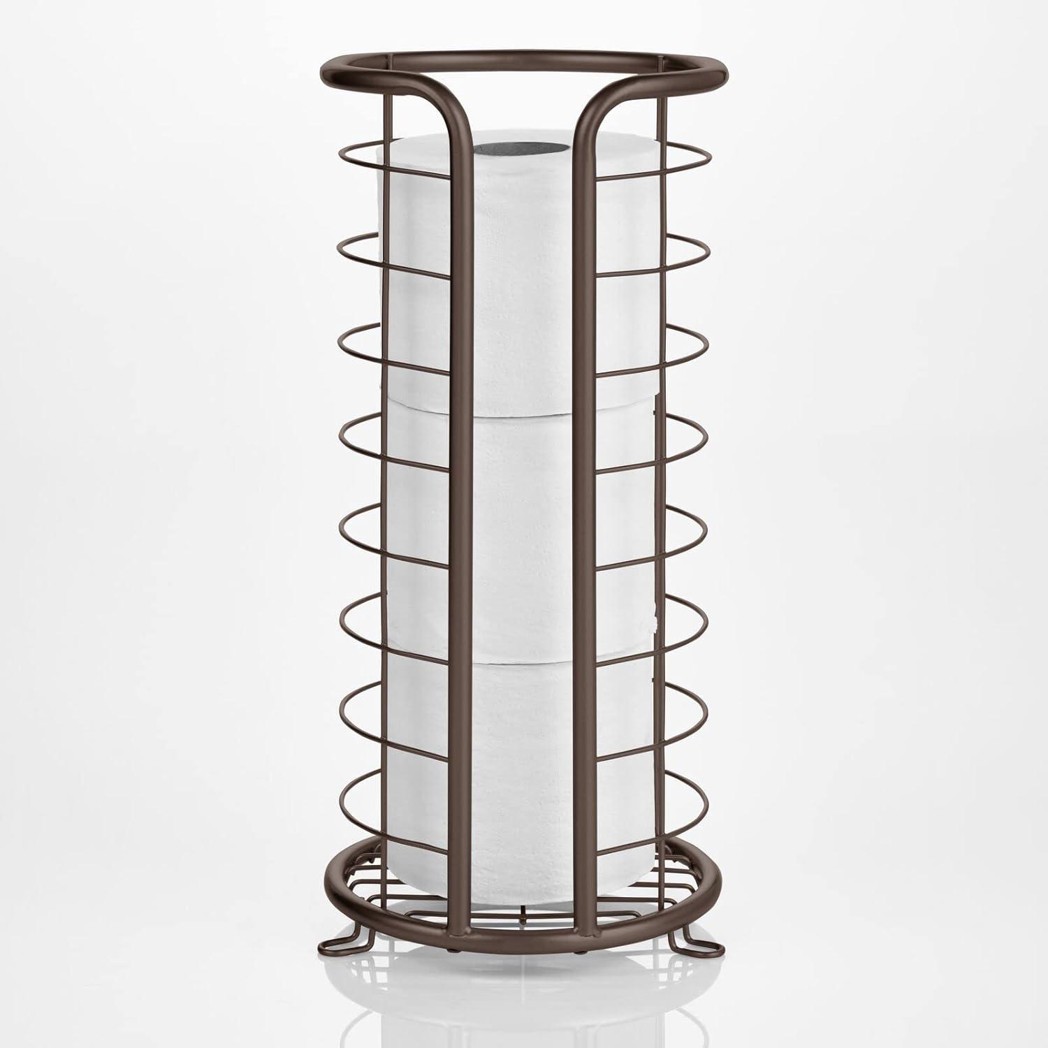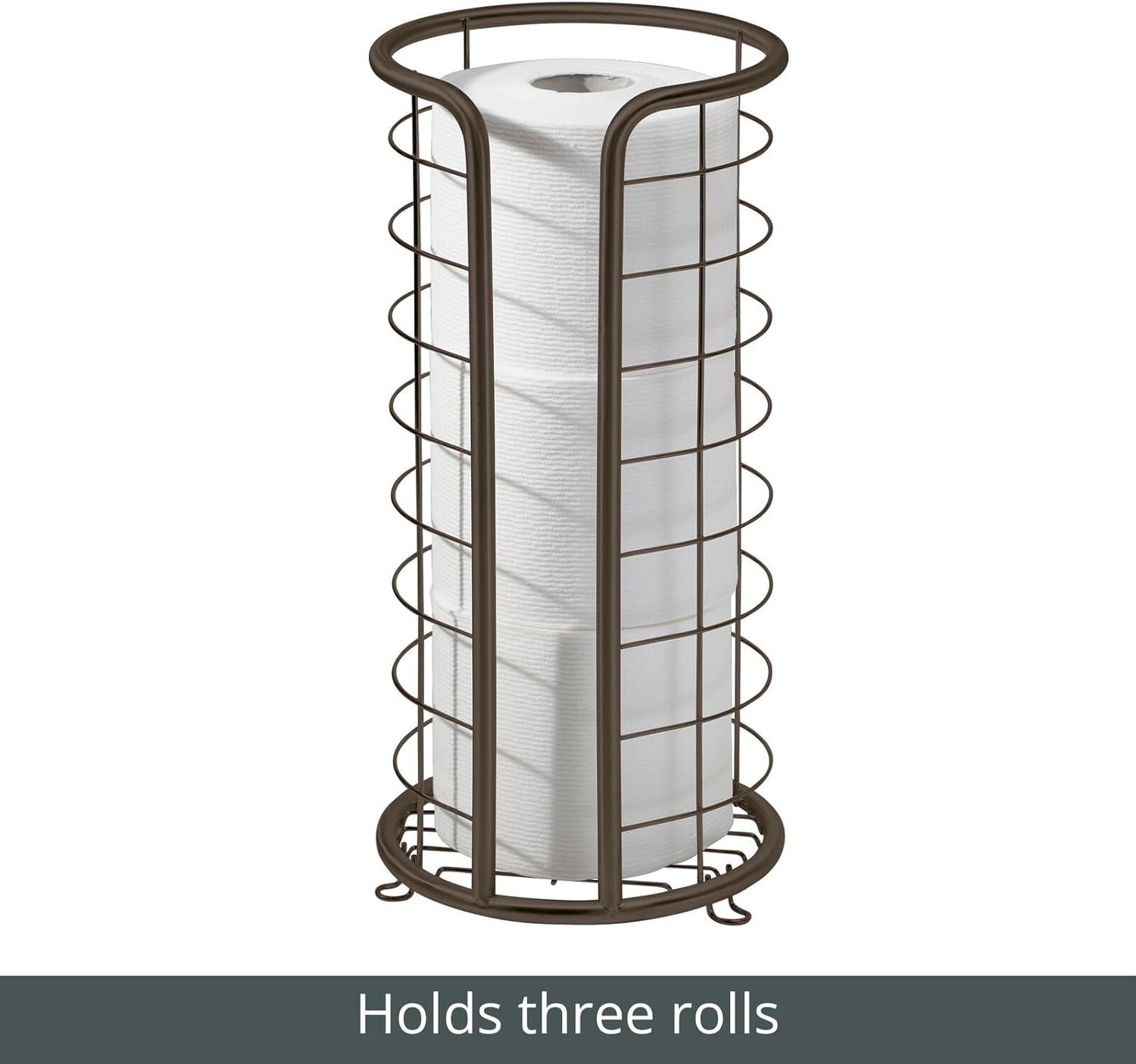 mDesign Metal Toilet Paper Holder Stand – Storage Reserve for 3 Rolls of Toilet Tissue – Freestanding Toilet Paper Holder – Stylish Bathroom Floor Toilet Paper Stand – Omni Collection – Matte Black(Bronze)