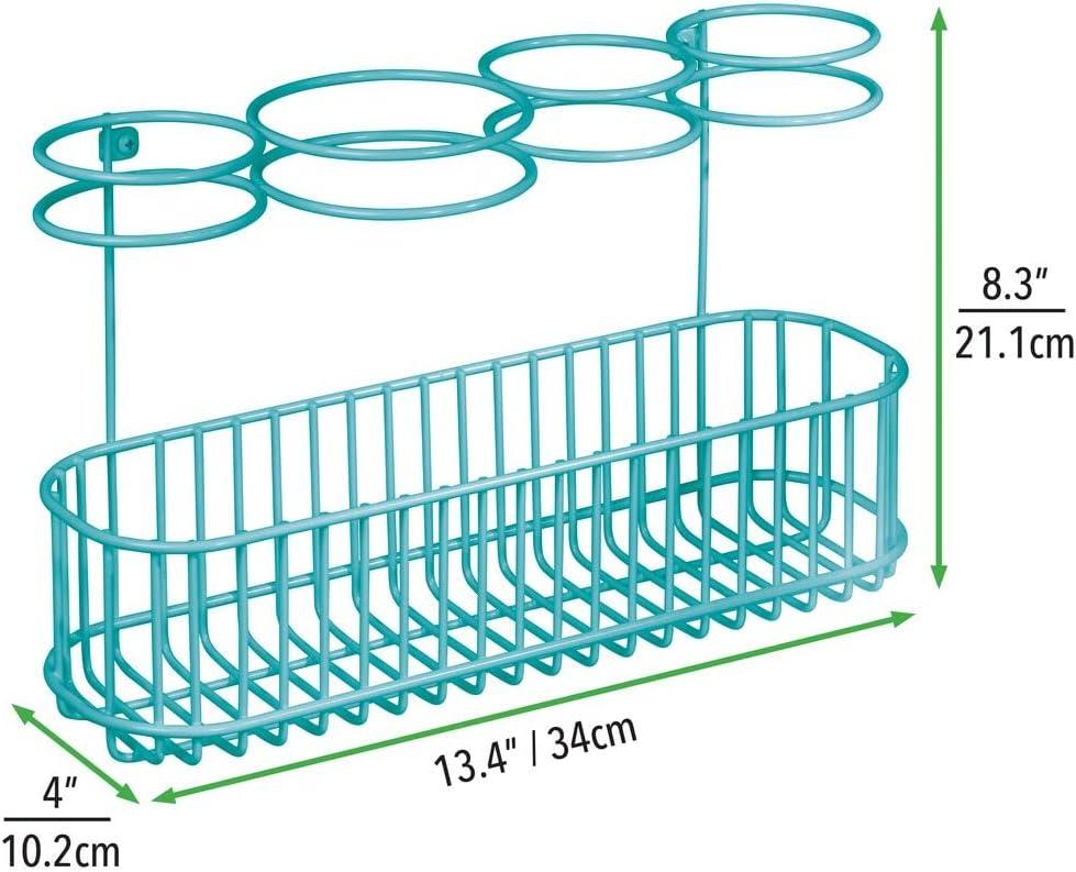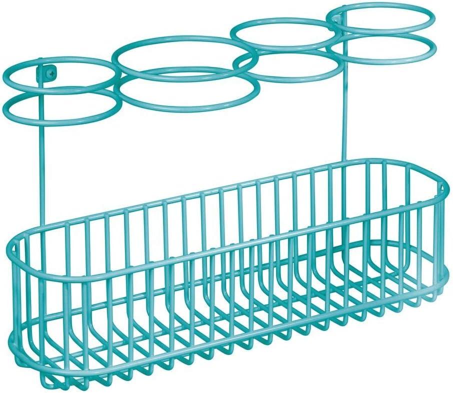 mDesign Metal Wire Cabinet/Wall Mount Hair Care & Styling Tool Organizer - Bathroom Storage Basket for Hair Dryer, Flat Iron, Curling Wand, Hair Straightener, Brushes - Holds Hot Tools - Teal/Blue(Teal)