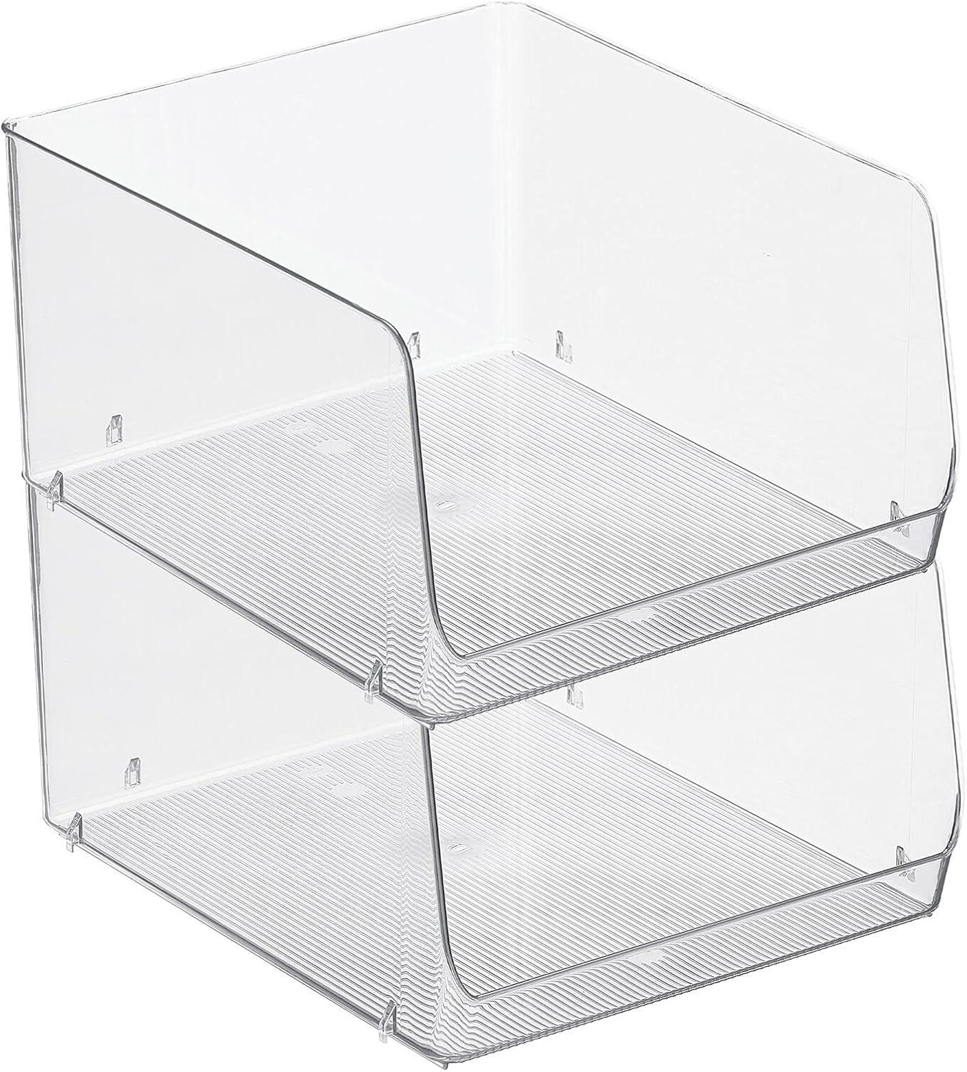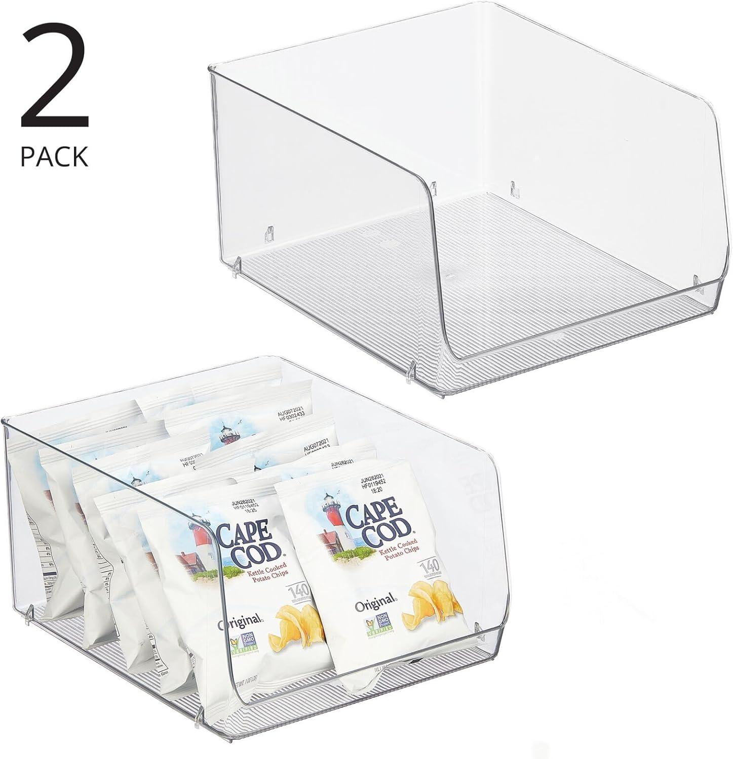 mDesign Modern Stackable Plastic Open Front Dip Storage Organizer Bin Basket for Kitchen Organization – Shelf, Cupboard, Cabinet, and Pantry Organizing Decor – Ligne Collection – 4 Pack – Clear(12 x 10 x 6.25 (Pack of 2))
