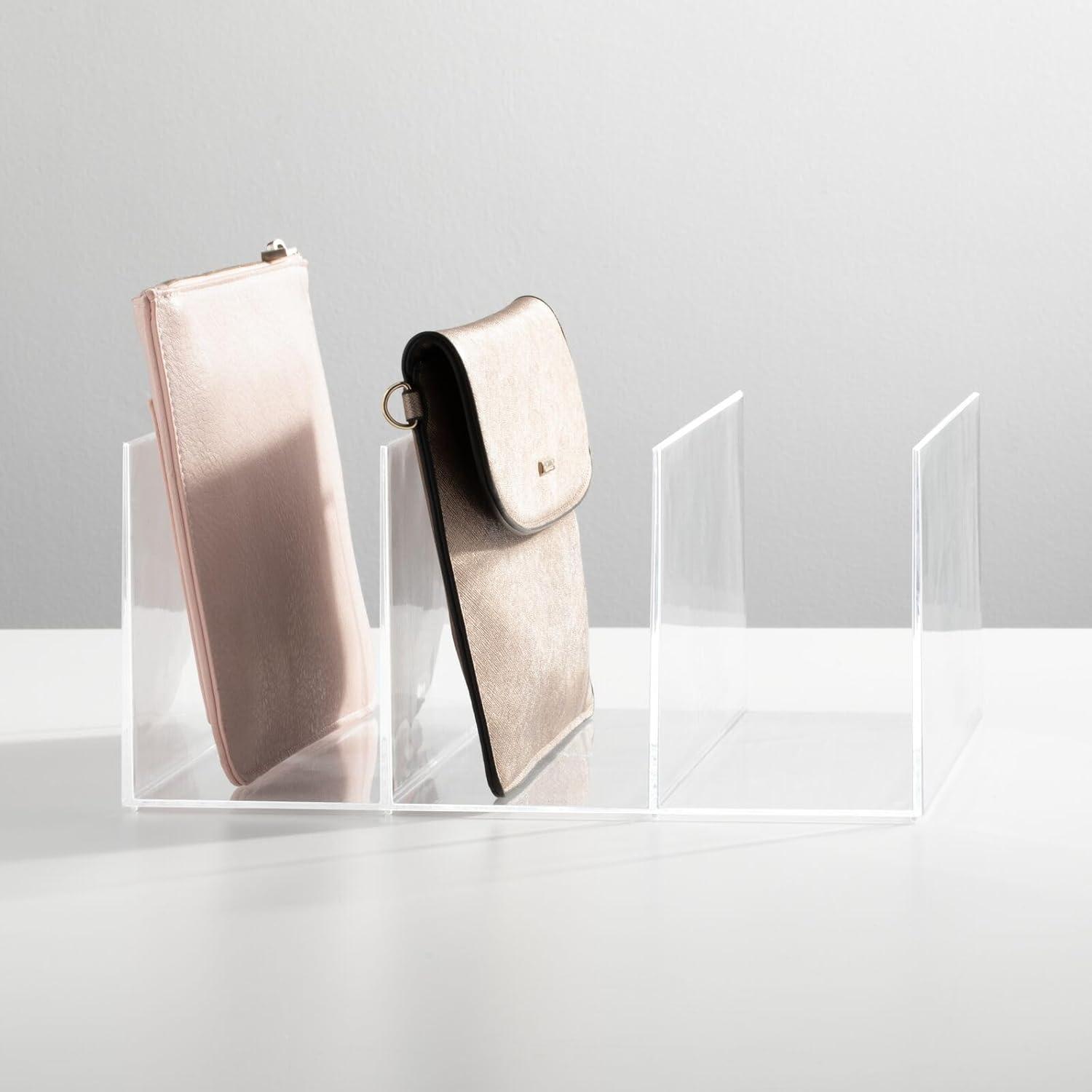 3 COMPARTMENTS Countertops and cabinets stay clean and clutter-free with this split compact clutch organizer with 3 separate storage compartments. Store your daily clutches, purses, purses and bracelets vertically and keep them organized and easy to find to make your morning routine effortless