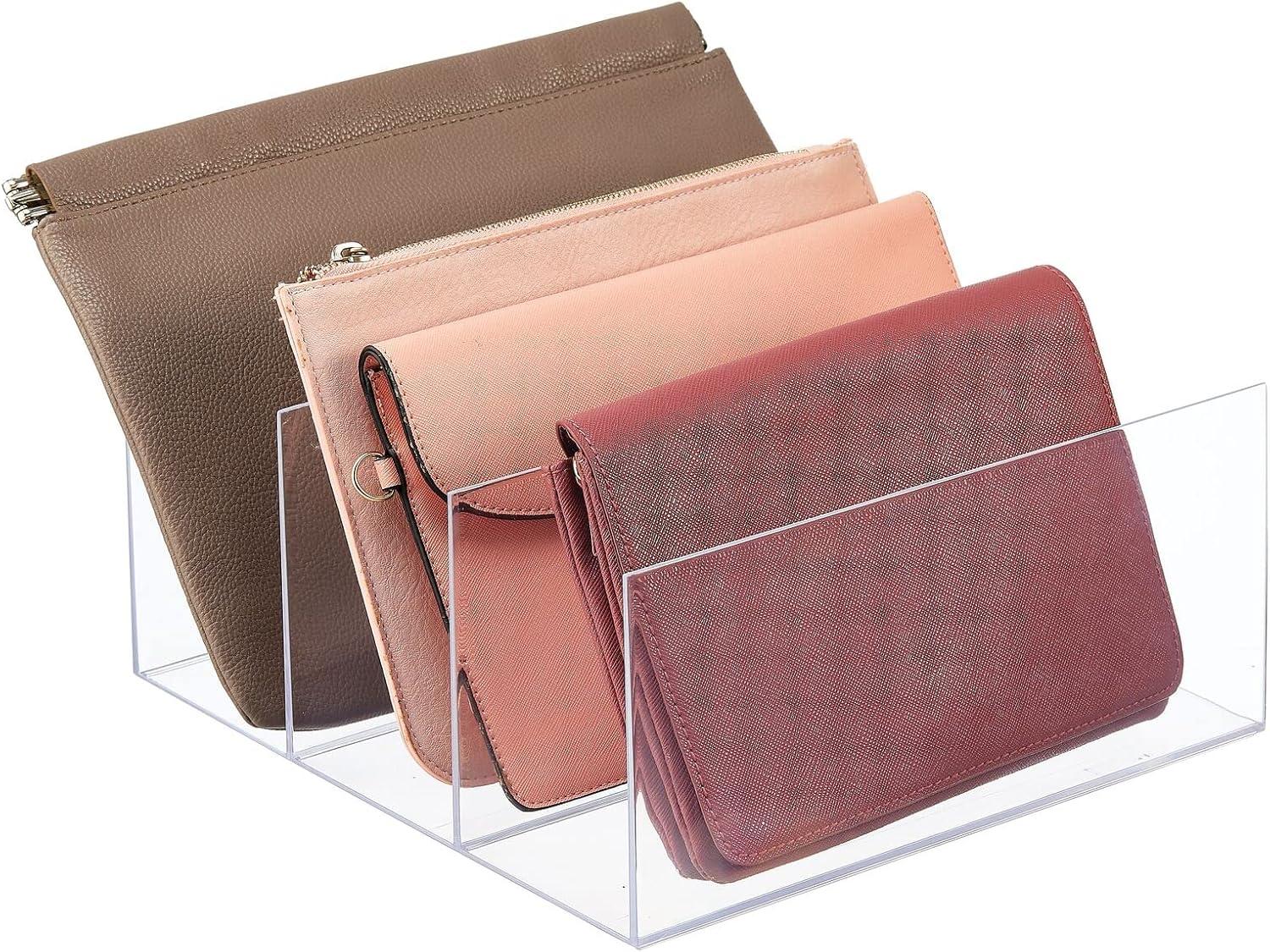 STORAGE MADE EASY Perfect for keeping accessories neat and tidy; Items are separated to protect them from scratches and wear; Items are easy to reach and easy to find; Holds large and small clutches in one convenient place; Perfect for countertops, dressers, shelves and inside cabinets or cabinets