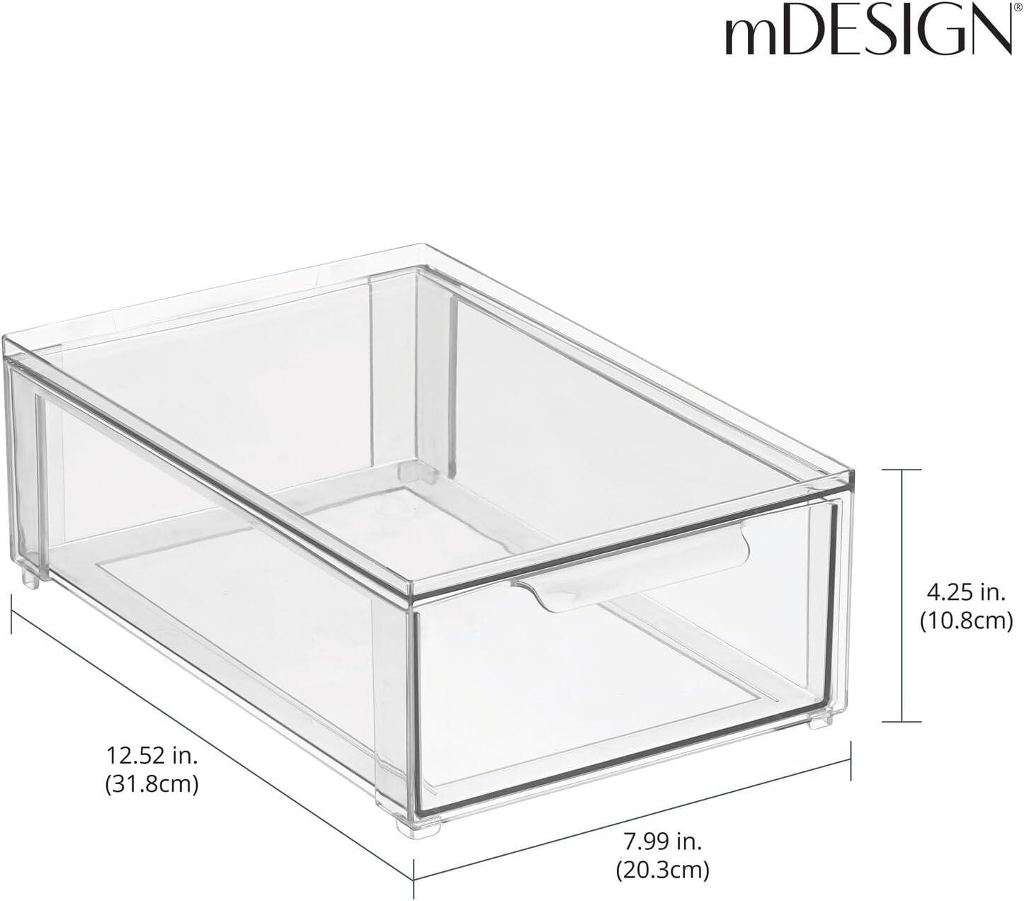 mDesign Plastic Stackable Bathroom Storage Organizer Bin Containers with Front Pull Drawer for Bathroom Countertop, Vanity, Closet Shelves - Holder for Beauty Accessories - Lumiere Collection - Clear(8 x 12 x 4 (Pack of 1))