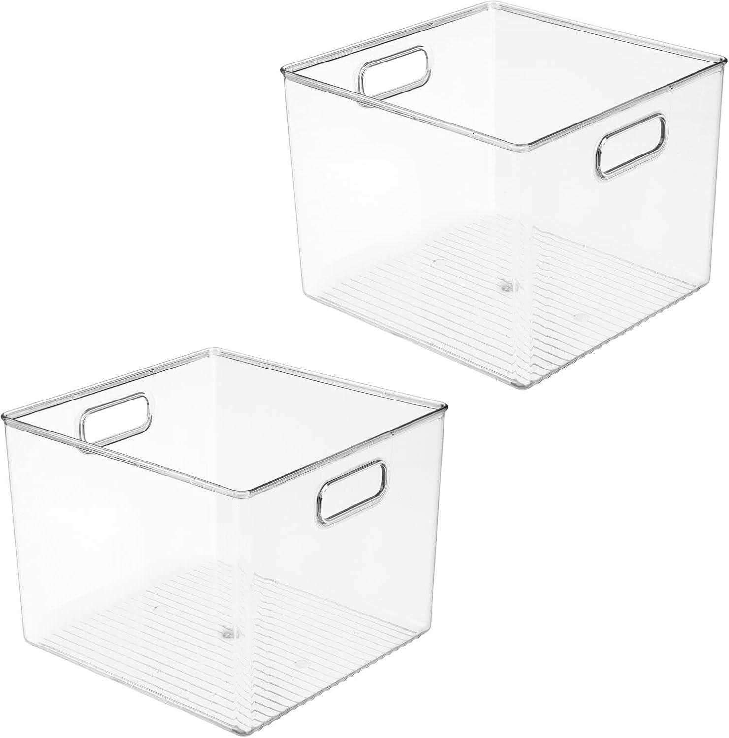 mDesign Plastic Storage Closet Organizer Bin, Container Bin for Entryway, Hallway, Bedroom, Linen, and Coat Closet - Organization for Clothing, Blankets, Toys, and Accessories, Ligne Collection, Clear(10 x 10 x 8 (Pack of 2))