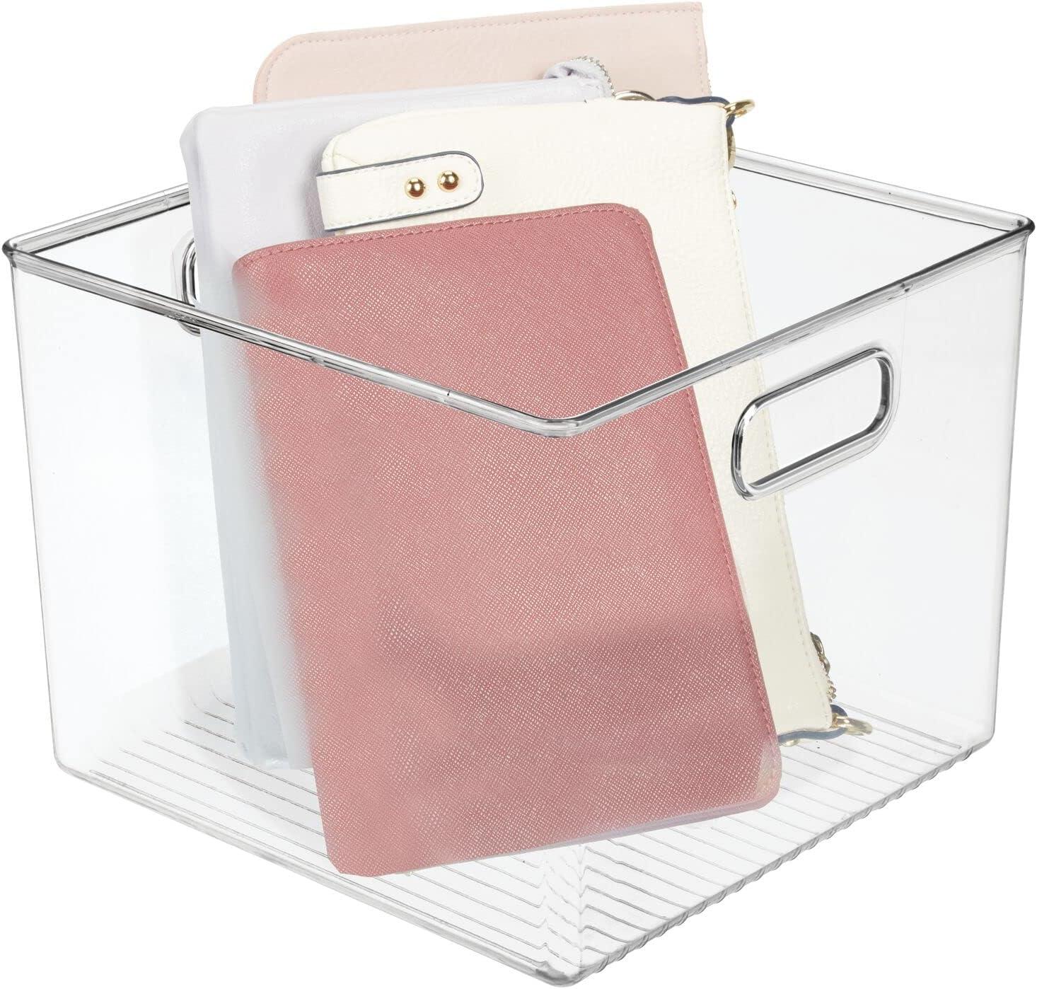 mDesign Plastic Storage Closet Organizer Bin, Container Bin for Entryway, Hallway, Bedroom, Linen, and Coat Closet – Organization for Clothing, Blankets, Toys, and Accessories, Ligne Collection, Clear(10 x 10 x 8 (Pack of 2))