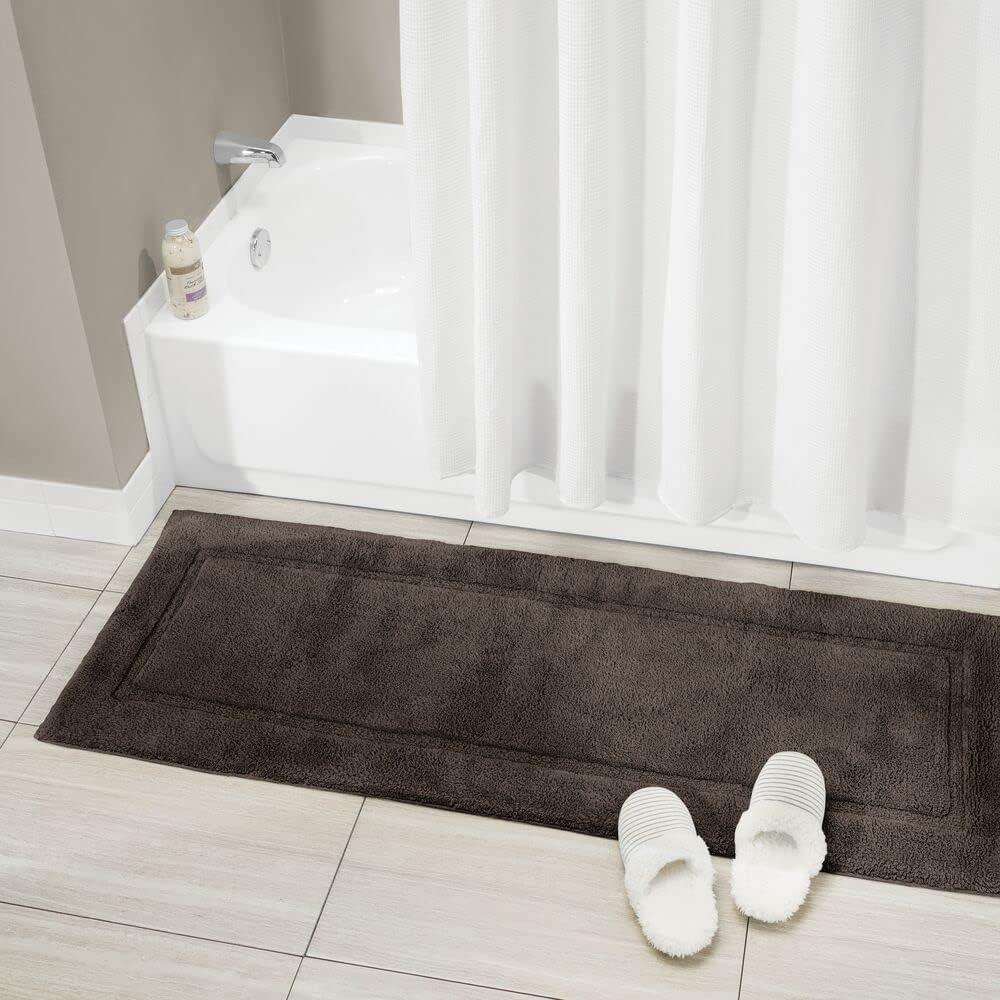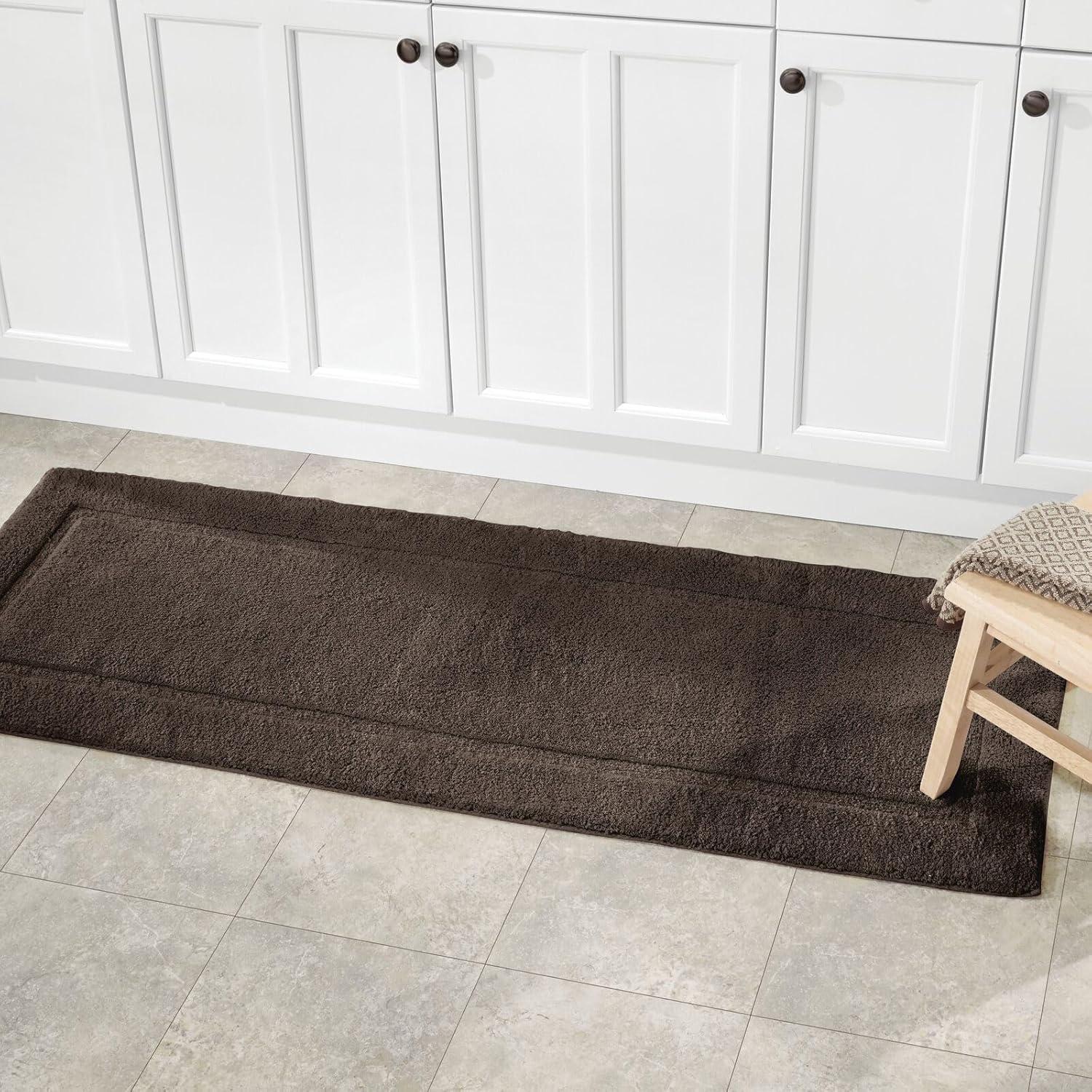 SOFT & ABSORBENT: Cotton absorbs water and dries quickly; The natural cotton yarns keep this rug looking and feeling great, even with repeated use; Floors stay dry, so no more worries about slippery bathroom floors; The decorative border adds subtle style to any room, great for the guest bathroom, powder room, master baths, kid's bathroom and more; The extra-long runner style of this rug makes ideal in front of double sink vanities