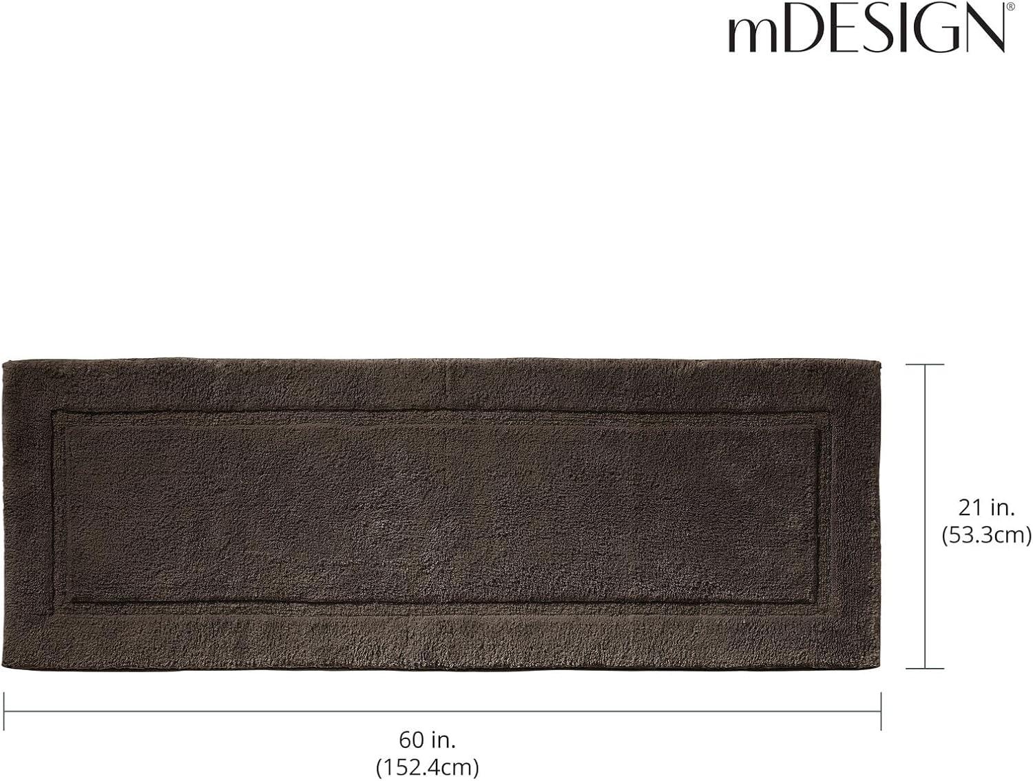 mDesign Soft 100% Cotton Luxury Hotel-Style Rectangular Spa Mat Rug, Plush Water Absorbent, Decorative Border for Bathroom Vanity Bathtub/Shower, Machine Washable Long Runner - 60" x 21" - Natural/Tan(Chocolate)