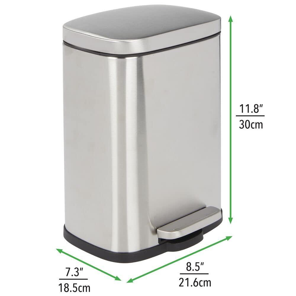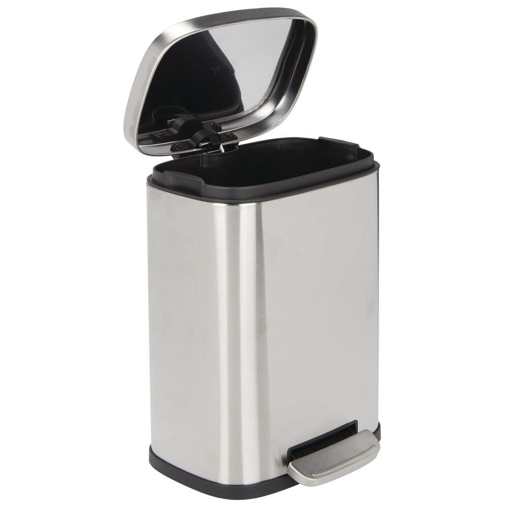 COMPACT DESIGN: The rectangular shape and compact design is the perfect size for inside cabinets, under counters, next to sinks and other small spaces; The lidded hands-free step cans allow you to store in plain sight; Liner bucket has metal handle for effortless disposal