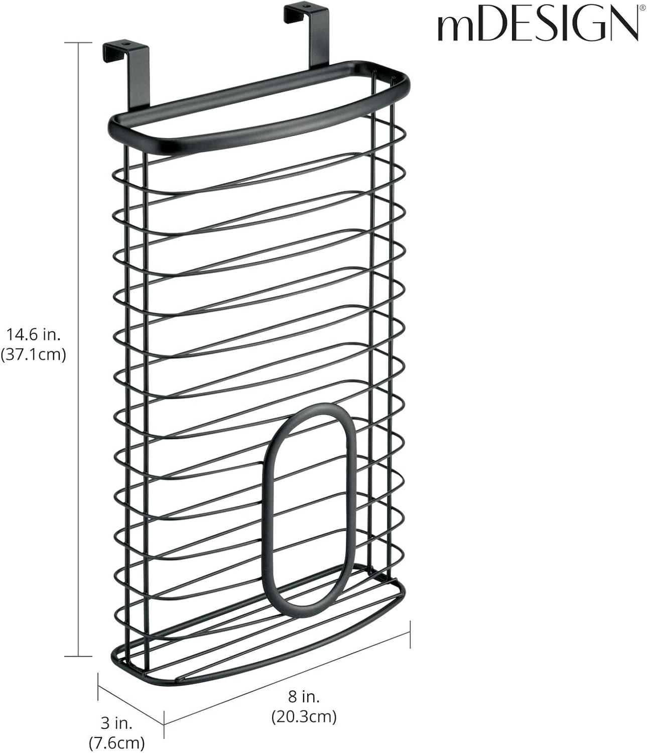 MAXIMIZE STORAGE SPACE – This door storage basket is the perfect way to store up to 50 plastic bags in one convenient location without compromising your storage space. Save valuable storage space in your cupboards and pantry. Works indoors or outdoors on cabinet doors.