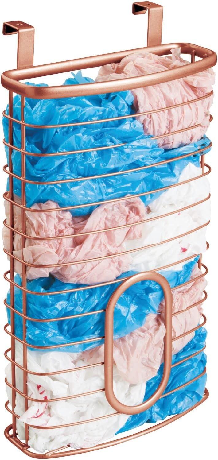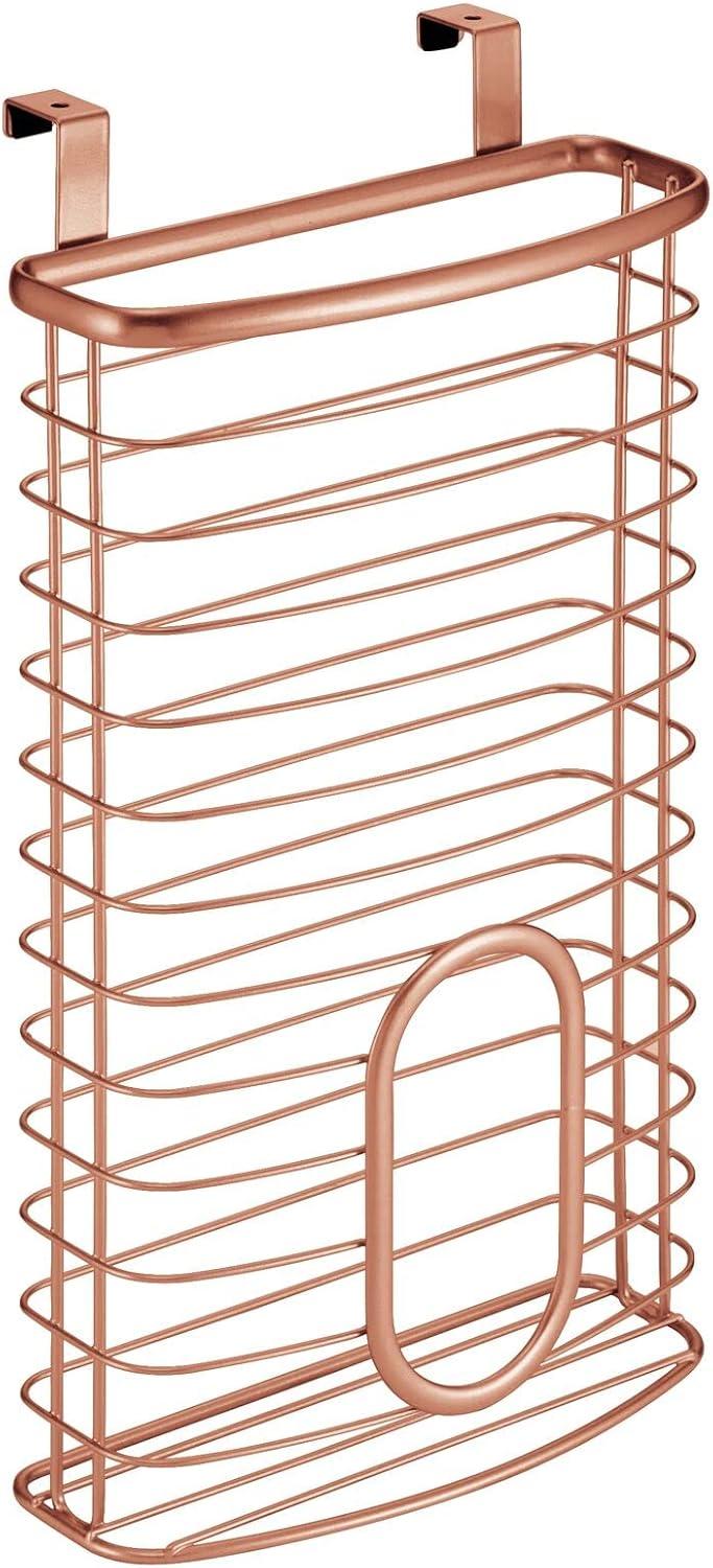 mDesign Steel Hanging Cabinet Storage Organizer Holder for Kitchen, Pantry – Holds Plastic, Sandwich, Garbage, Grocery and Trash Bags; Wrap, Foil, Pack – Spira Collection – Black(Copper)