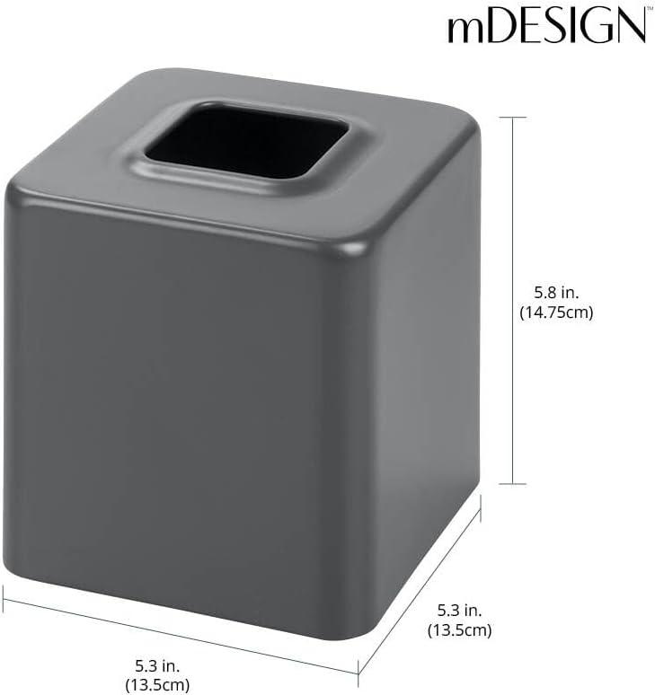 mDesign Steel Square Tissue Box Cover, Modern Facial Tissue Holder for Bathroom Vanity Countertops, Bedroom Dressers, Night Stands, Desks, Office and Tables – Unity Collection – Satin(Graphite)