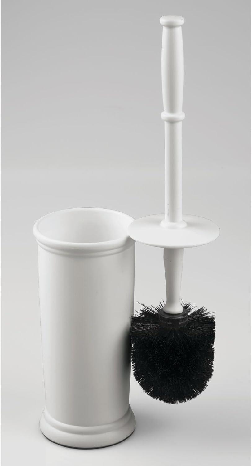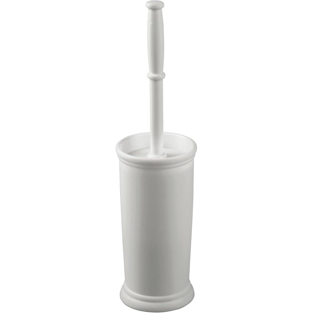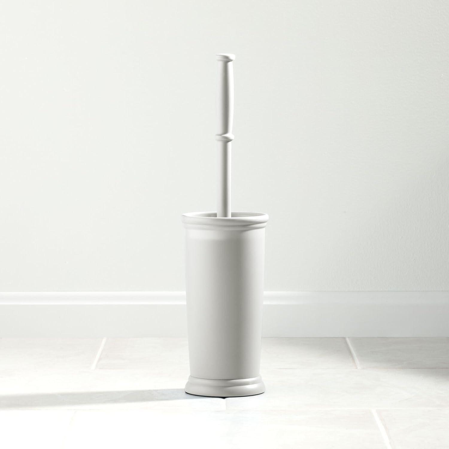mDesign Toilet Bowl Brush and Holder - Covered Bathroom Brush - Standing Scrubber in Modern Holder - Compact, Space Saving, Deep Cleaning - White(Light Gray)
