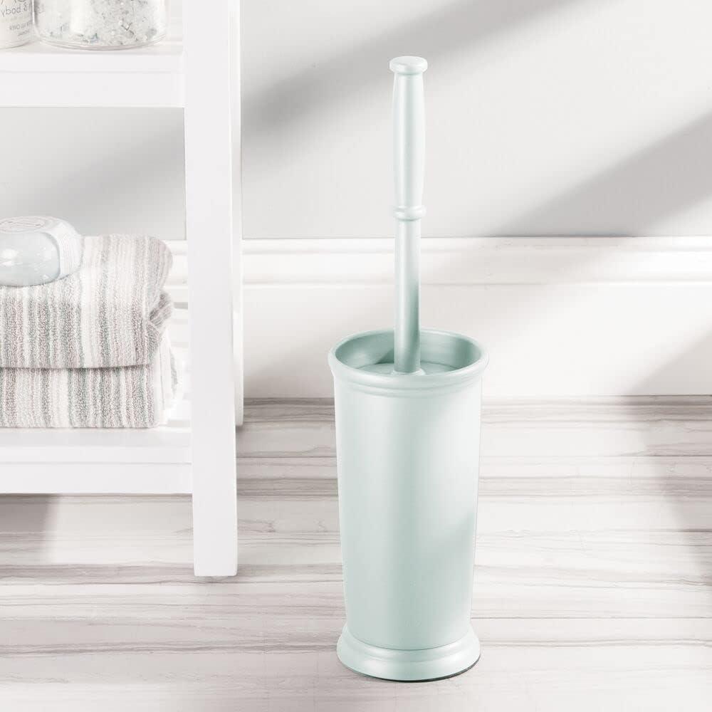 mDesign Toilet Bowl Brush and Holder – Covered Bathroom Brush – Standing Scrubber in Modern Holder – Compact, Space Saving, Deep Cleaning – White(Mint Green)