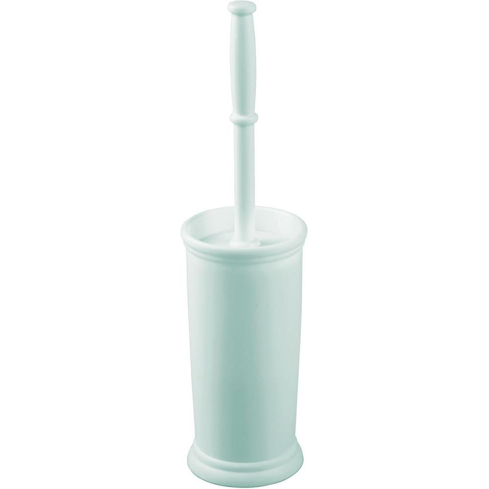 mDesign Toilet Bowl Brush and Holder - Covered Bathroom Brush - Standing Scrubber in Modern Holder - Compact, Space Saving, Deep Cleaning - White(Mint Green)