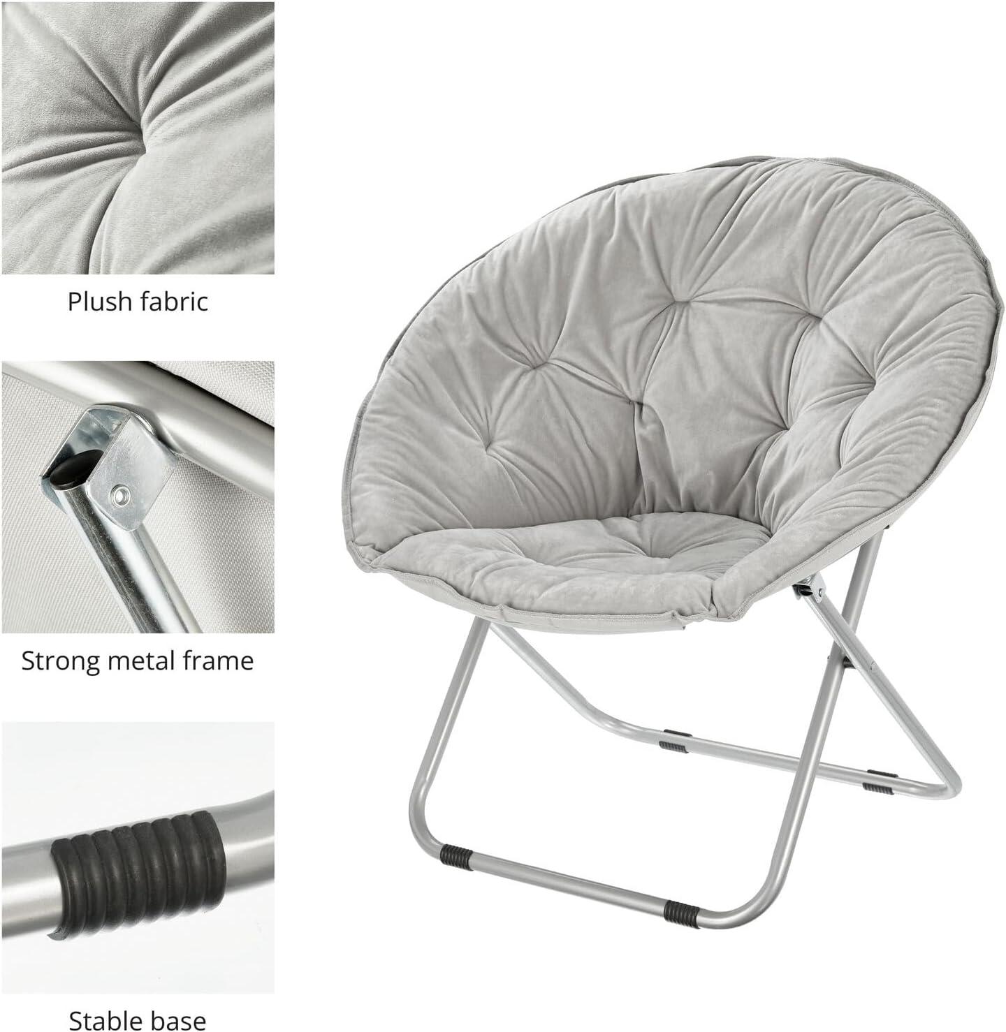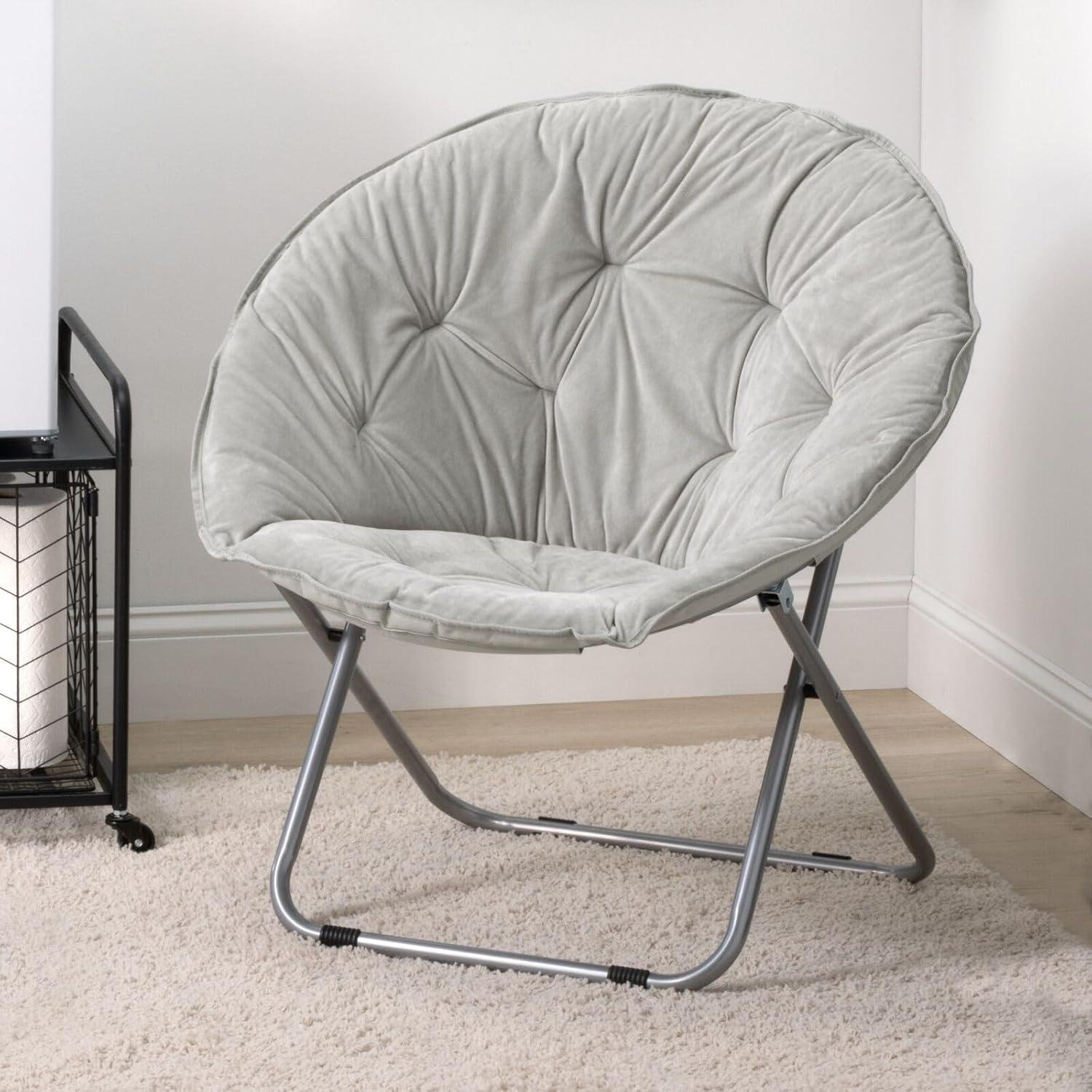 mDesign Urban Papasan Folding Moon Chair – Large Saucer UFO Chair with Collapsible Metal Frame – Fuzzy Foldable Dish Seat for Home Office, Living Room, Dorm Room, and Bedroom – Beige/Silver(Gray/Silver)