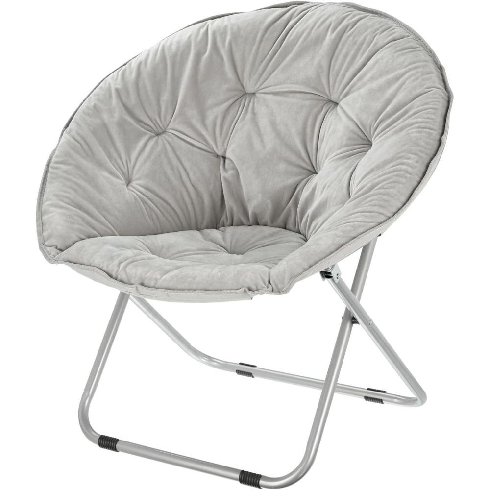 imagemDesign Urban Papasan Folding Moon Chair  Large Saucer UFO Chair with Collapsible Metal Frame  Fuzzy Foldable Dish Seat for Home Office Living Room Dorm Room and Bedroom  BeigeSilverGraySilver