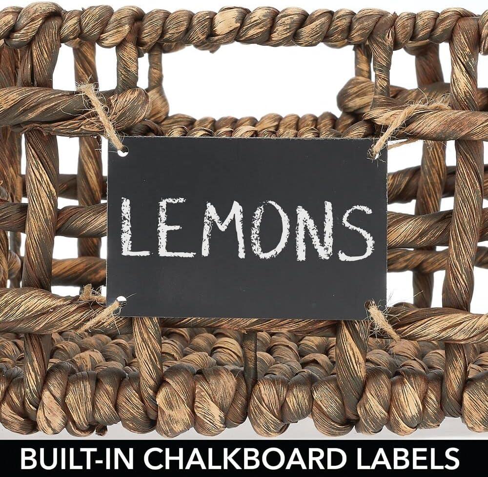 image:imagemDesign Water Hyacinth Open Weave Household Basket with Builtin Chalkboard Label for Storage in Bedroom Office  Hold Clothes Blankets Linens Accessories  6 Pack  Brown Wash