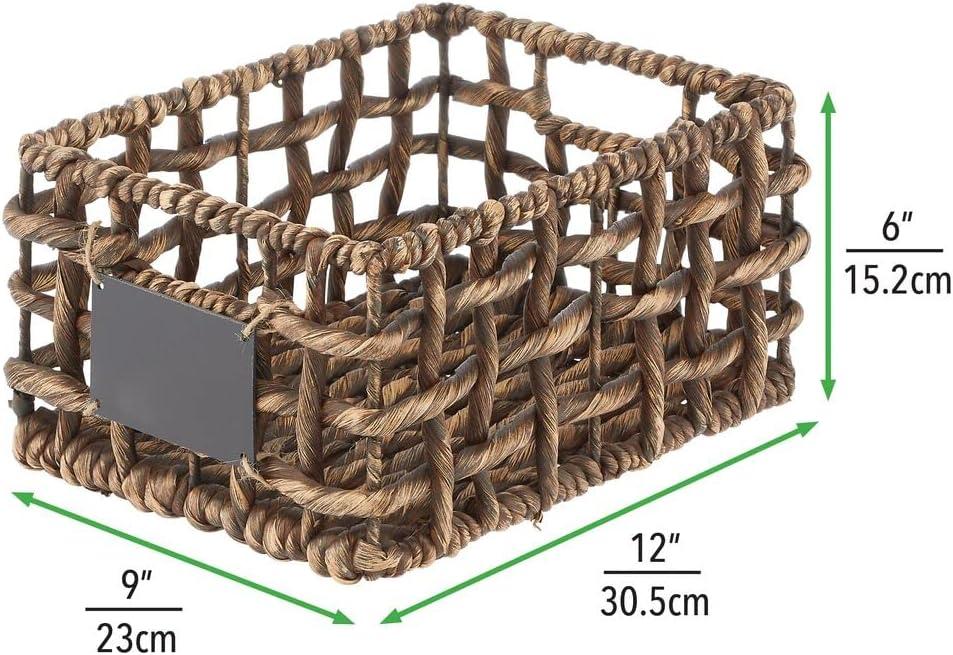 mDesign Water Hyacinth Open Weave Household Basket with Built-in Chalkboard Label for Storage in Bedroom, Office – Hold Clothes, Blankets, Linens, Accessories – 6 Pack – Brown Wash